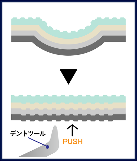 デントリペアがなぜ査定に響かないのか。それは、パテ盛りや塗装をしないため、新車時の塗装を生かした修理ができるからです。